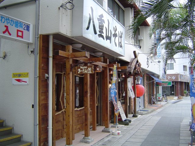 いくつかお店の並んでいる市役所通りを行ったり来たりした結果、「張りきって営業中」(だったかな)という札にひかれて、730交差点に近い「そば処まーさん道」というお店で、まずはソーキそばを頼んでみました。沖縄そばの類いを食べたのはこれが最初だったのですが、なかなかおいしい……。このお店は、どういうわけか壁一面に名刺やら定期券やらが画鋲で刺してあります。最初はきっちり並べて貼られていたようなんですが、やがて乱雑に上から上から貼り重なれているようでした。ここを読んでいる人には「たん清」みたいな感じといえばいいのかしらね……。