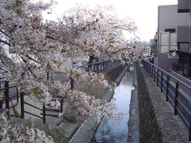 武蔵小杉の喫茶去の前を流れる用水で桜を撮っていたら、目の前で店が閉まってしまった…。しくしく。